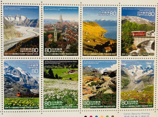 Switzerland and Japan Postage Stamps 80yen×10 2014 good condition