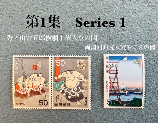 Japanese Sumo postage stamps Series 1 to 5, perfect set issued in 1978,1979